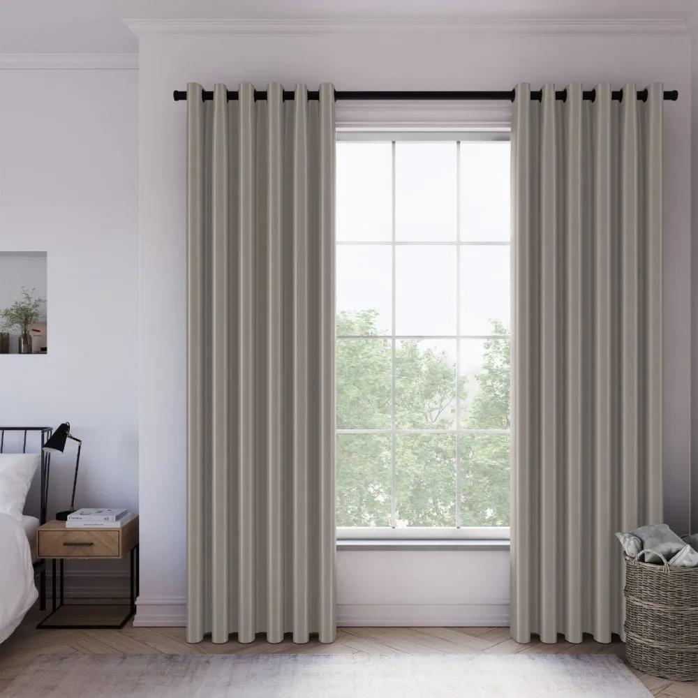 Koi Faux Silk Office Curtains feature soft faux silk polyester with a blackout finish for effective light control. Designed with an eyelet heading, they add a touch of luxury while providing privacy and a polished look for office and shared spaces.